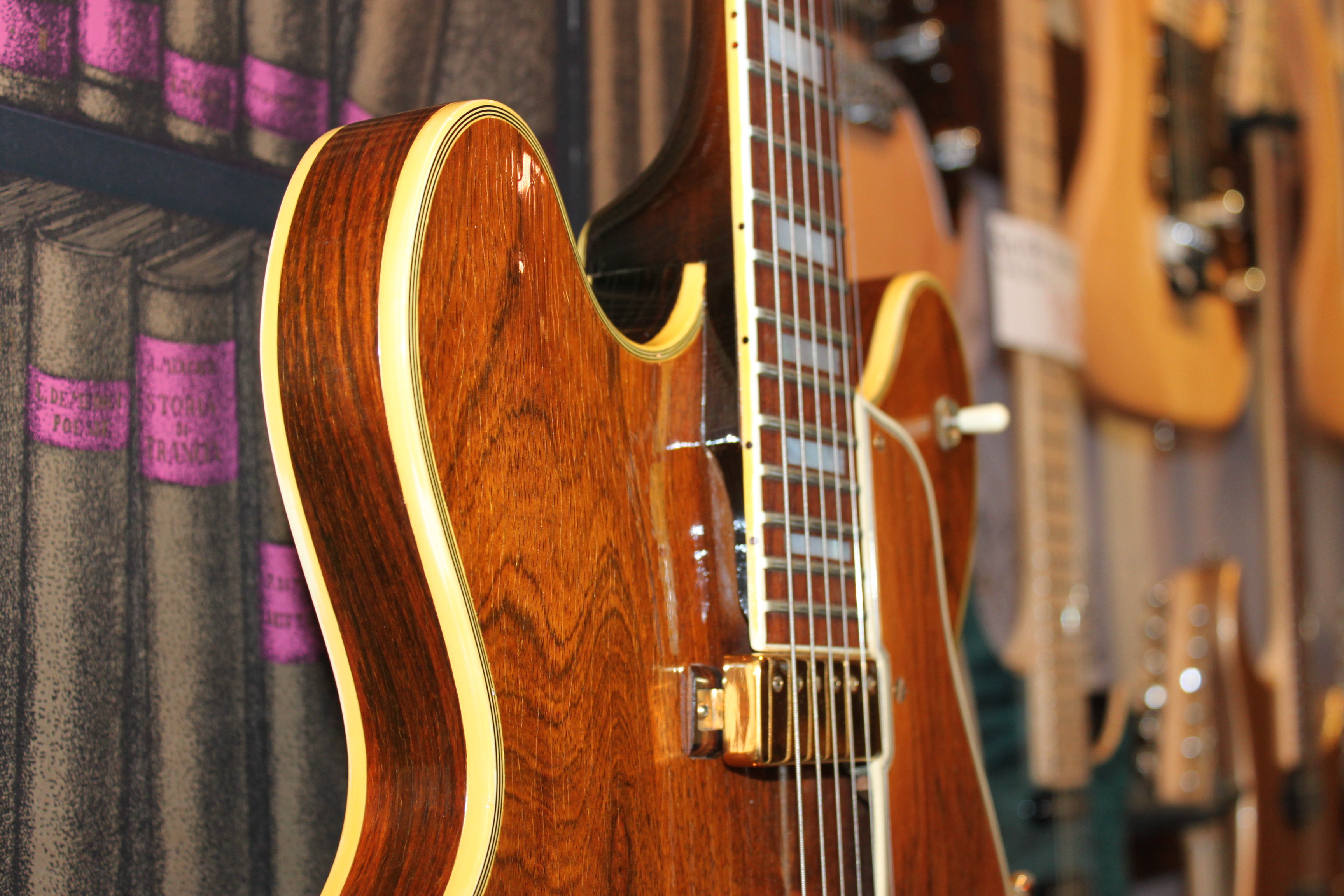 Une rareté , elle date de 1969 .Le palissandre de Rio est à l'honneur car elle en est recouverte !! Le pickguard est aussi en Rio ainsi que la touche !!!Bref un vrai collector !!!!! 172 ont été fabriqués de 1969 à 1972 !!Etui d'origine ( le reste aussi d’ailleurs !!! ) .