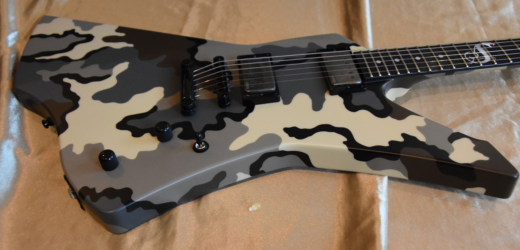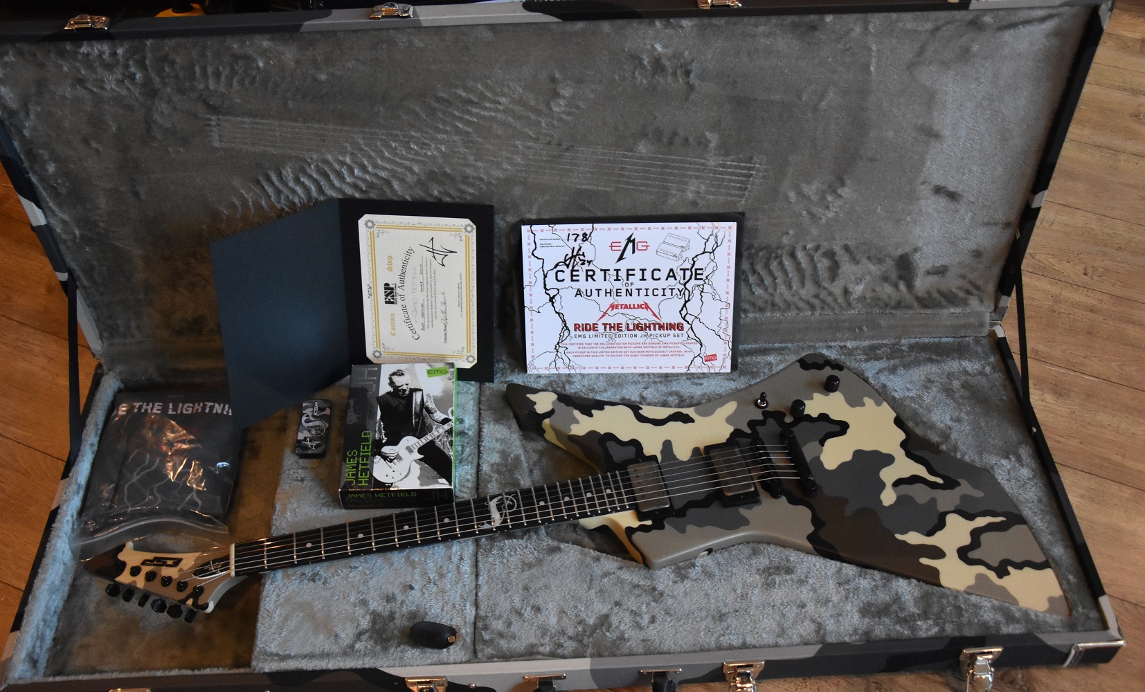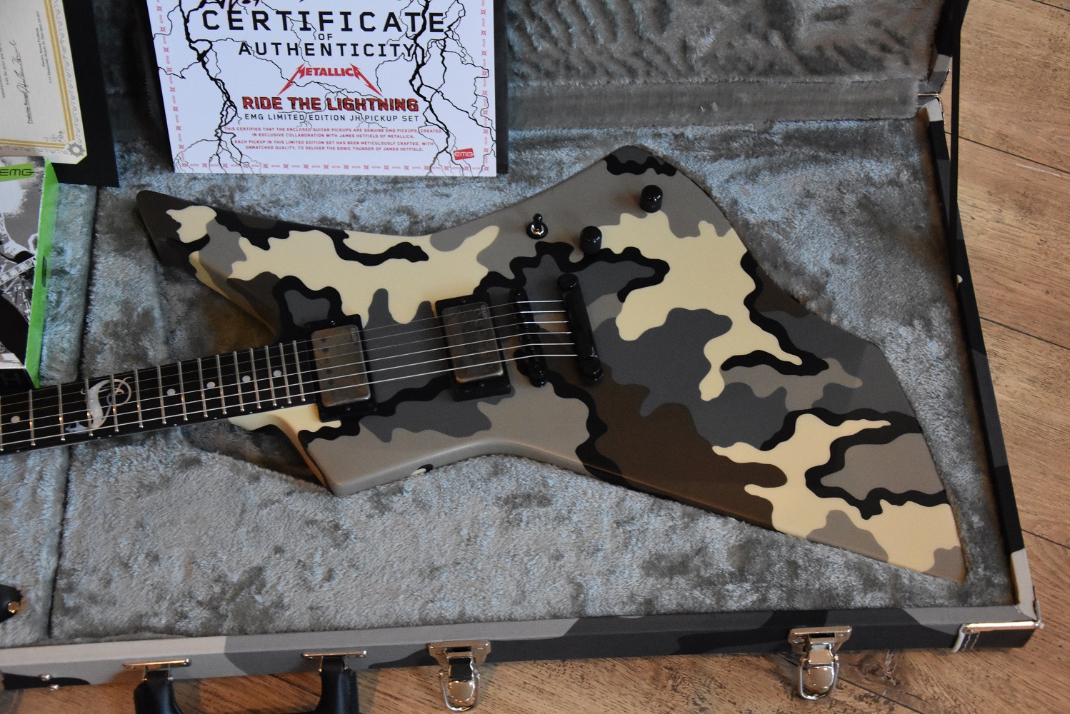 Cette version est fabriquée par le custom shop de ESP au JAPON c'est la version signature James HETFIELD en série ultra limitée SANAKEBYTE CAMO.