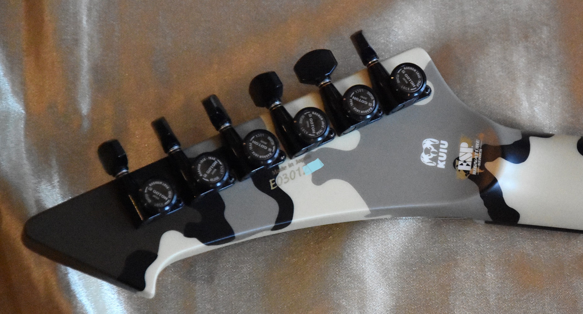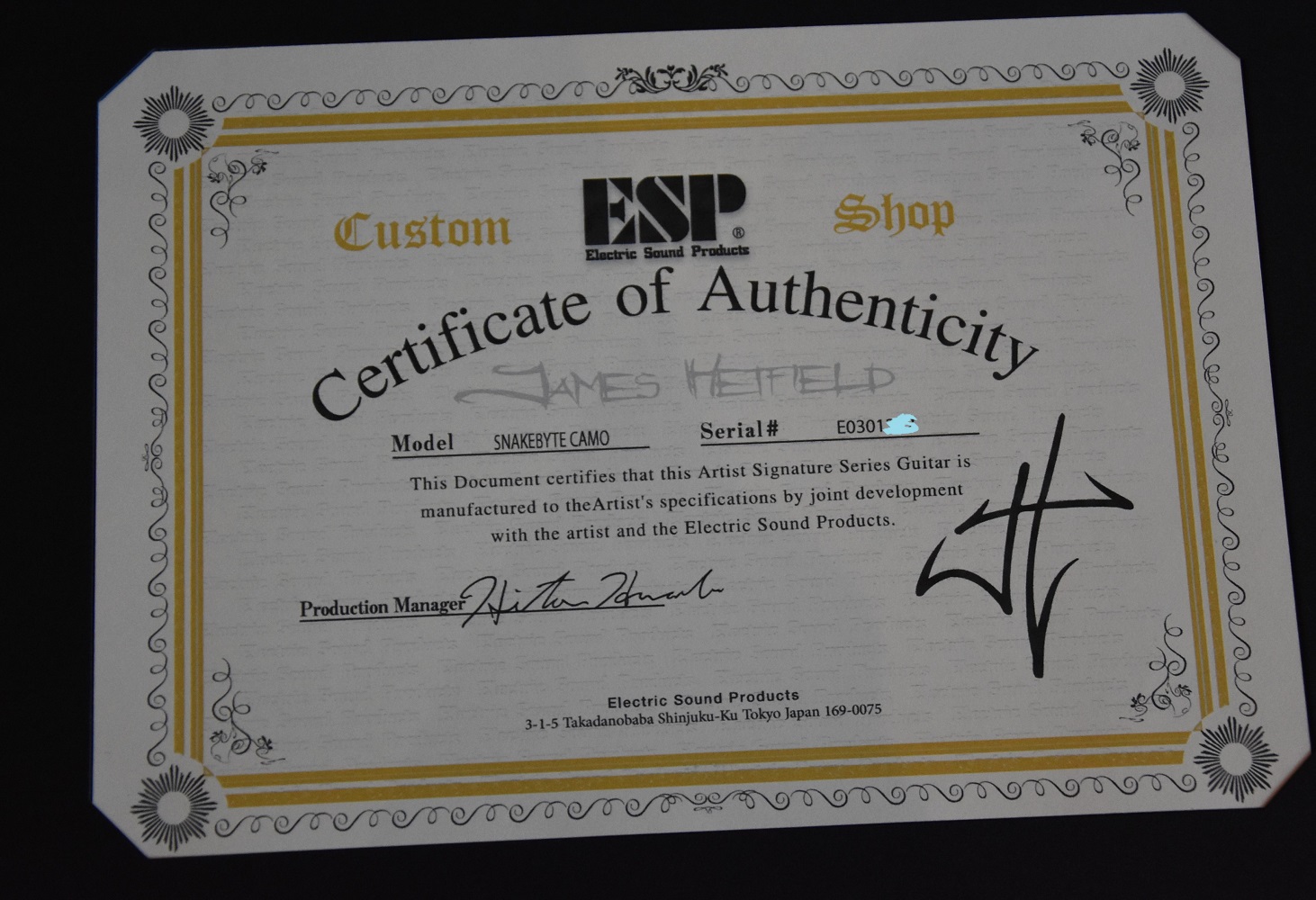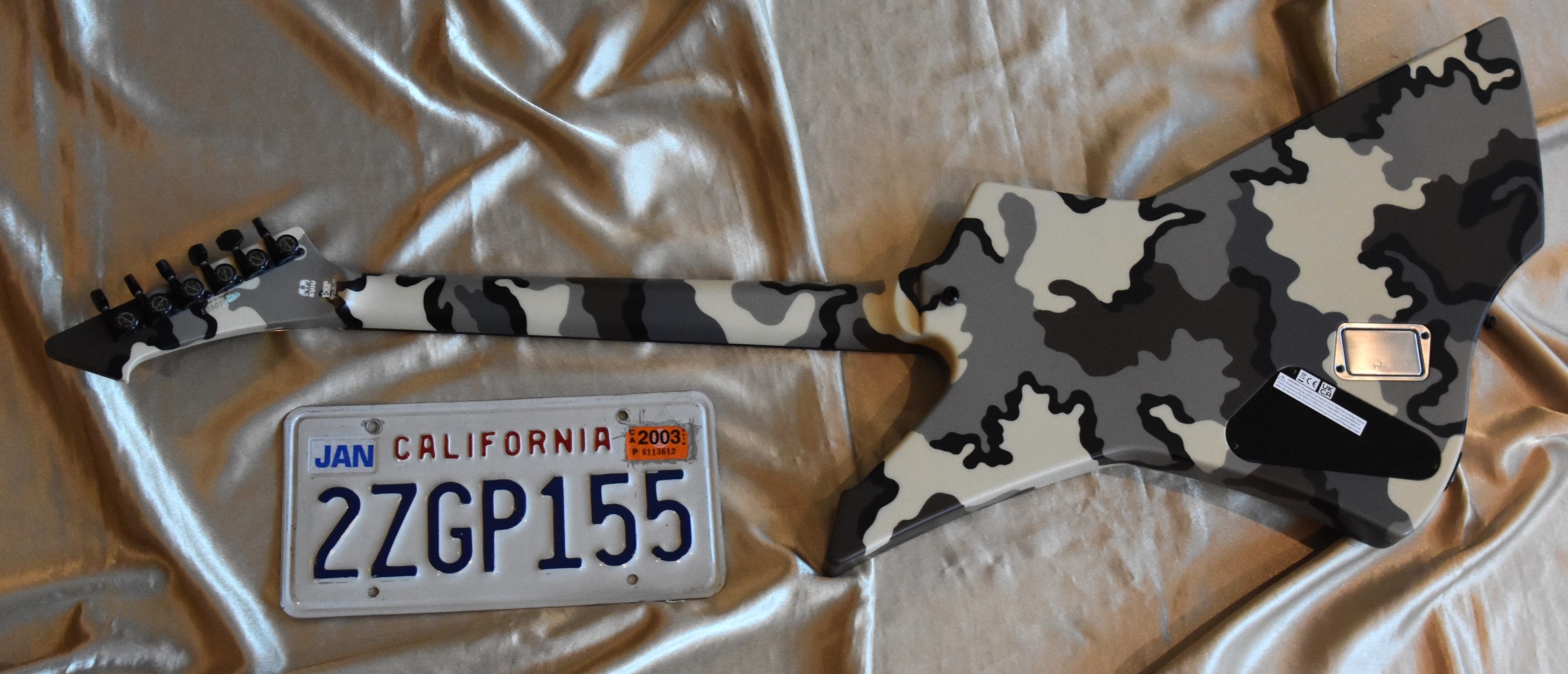 Cette version est fabriquée par le custom shop de ESP au JAPON c'est la version signature James HETFIELD en série ultra limitée SANAKEBYTE CAMO.