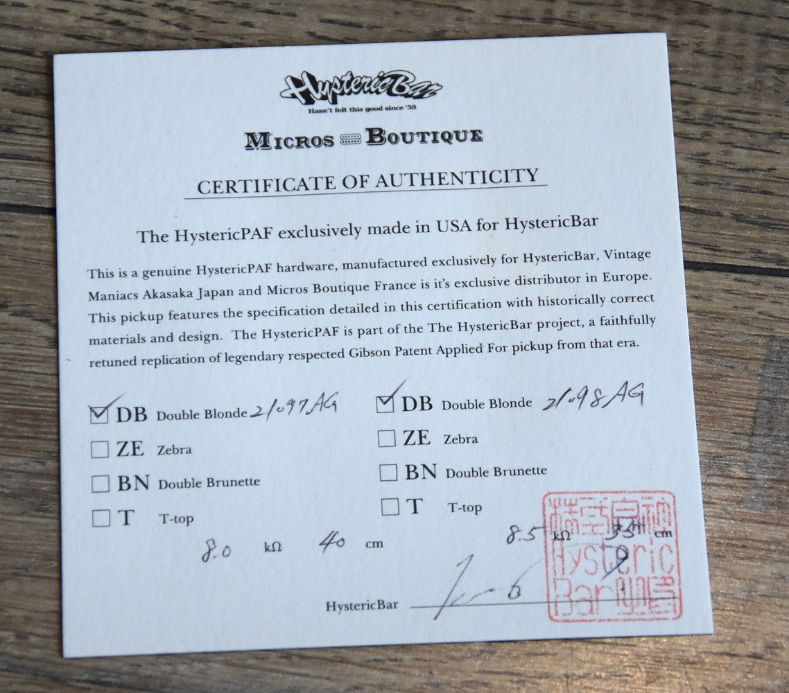 Set de micros HYSTERIC BAR réputés pour leur réalisme sonore qui se rapprochent tellement des PAF GIBSON Originaux .