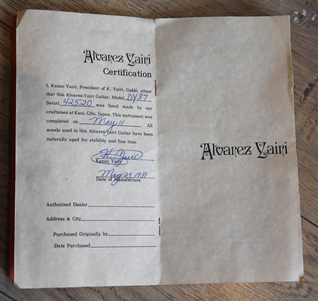 C'est un modèle Japonais produit en série limitée du temps du fondateur Kazuo Yairi en 1981 en version double manche 12 et 6 cordes .