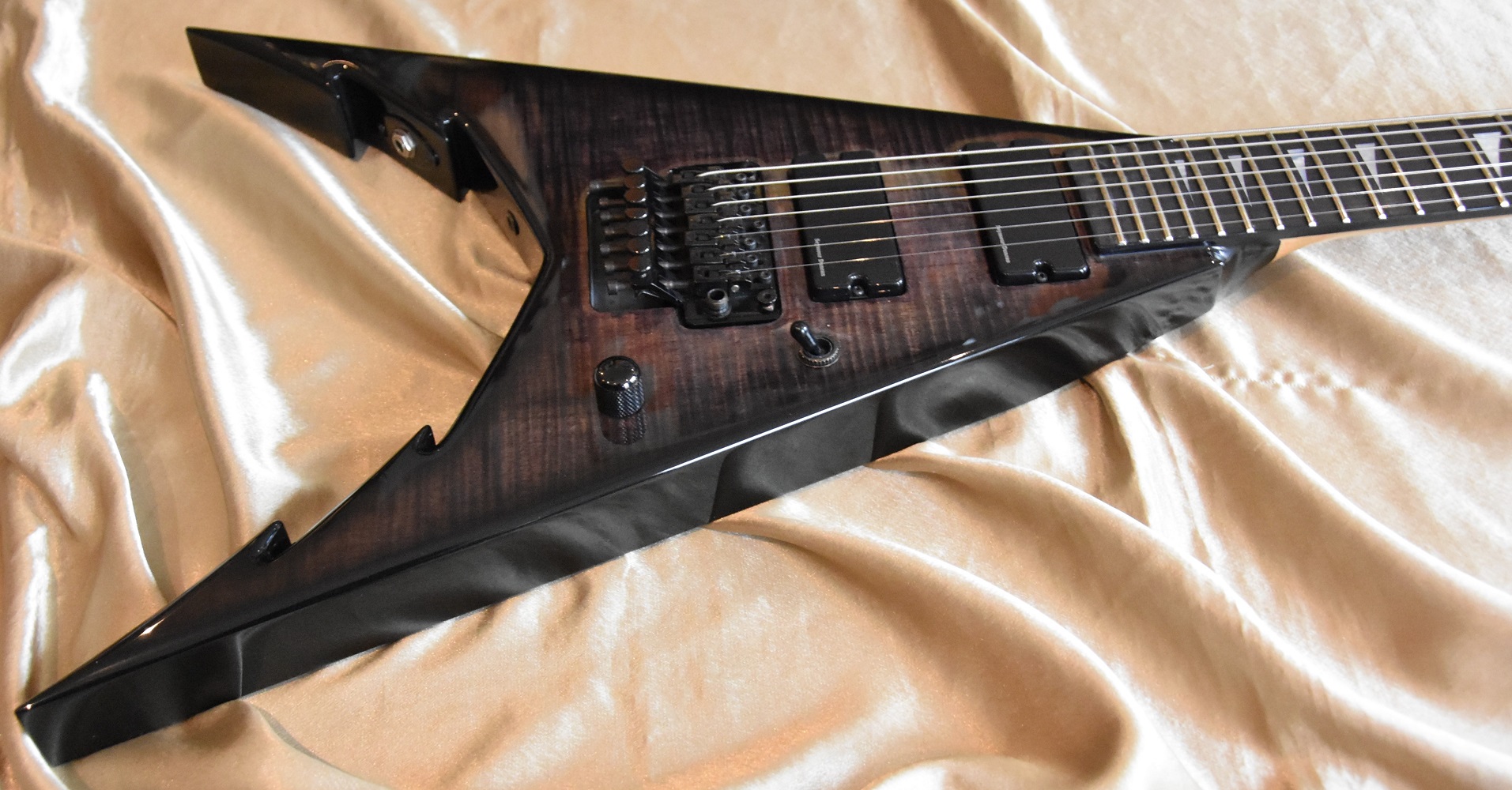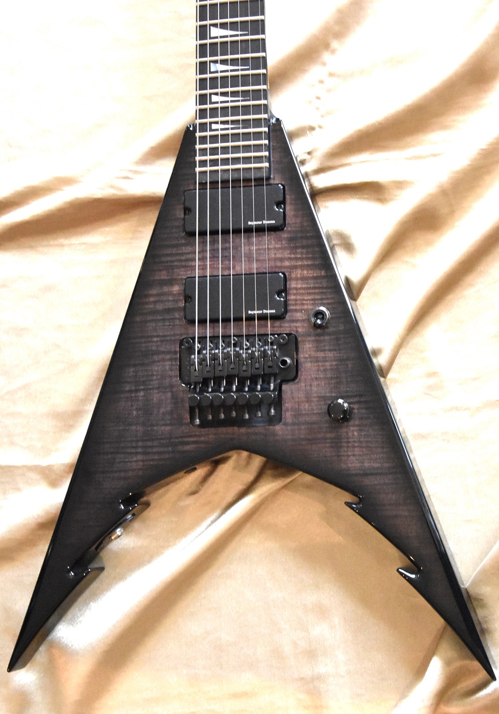 C'est la version 7 cordes avec tête reverse avec une magnifique table en érable flammée et la tête reverse.