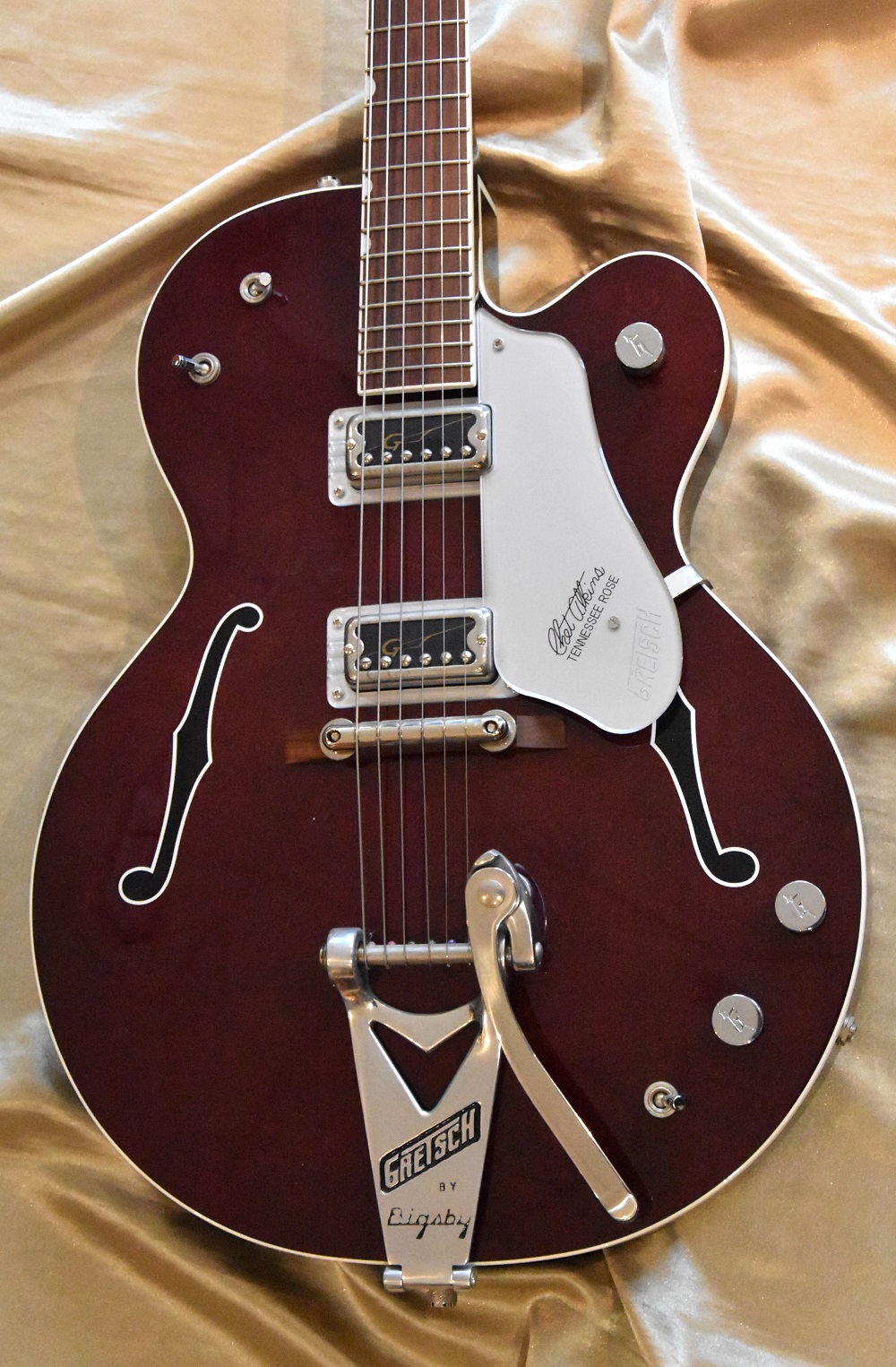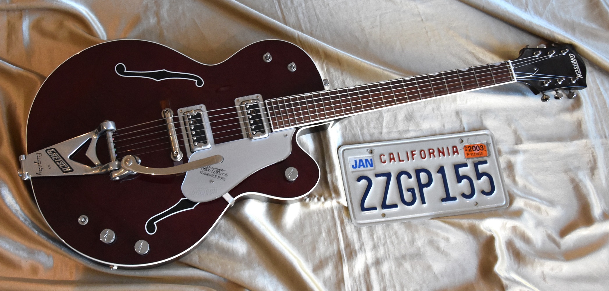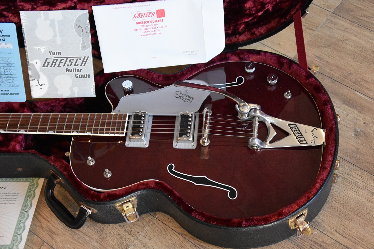 Cette GRETSCH G6119 1962 HT TENNESSEE ROSE a été fabriquée en 2008 par l'usine de TERADA au JAPON est en état collection, donc comme neuve avec son COA ses goodies et son étui d'origine .
