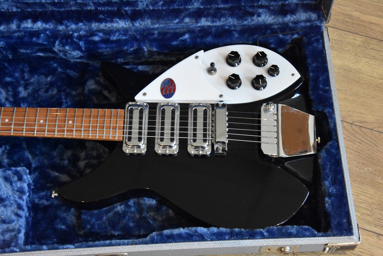 Magnifique RICKENBACKER 325 C64 jet glo datant de 2015 en état mint avec son étui d'origine.