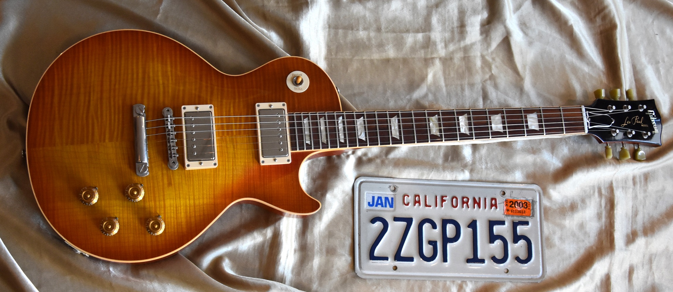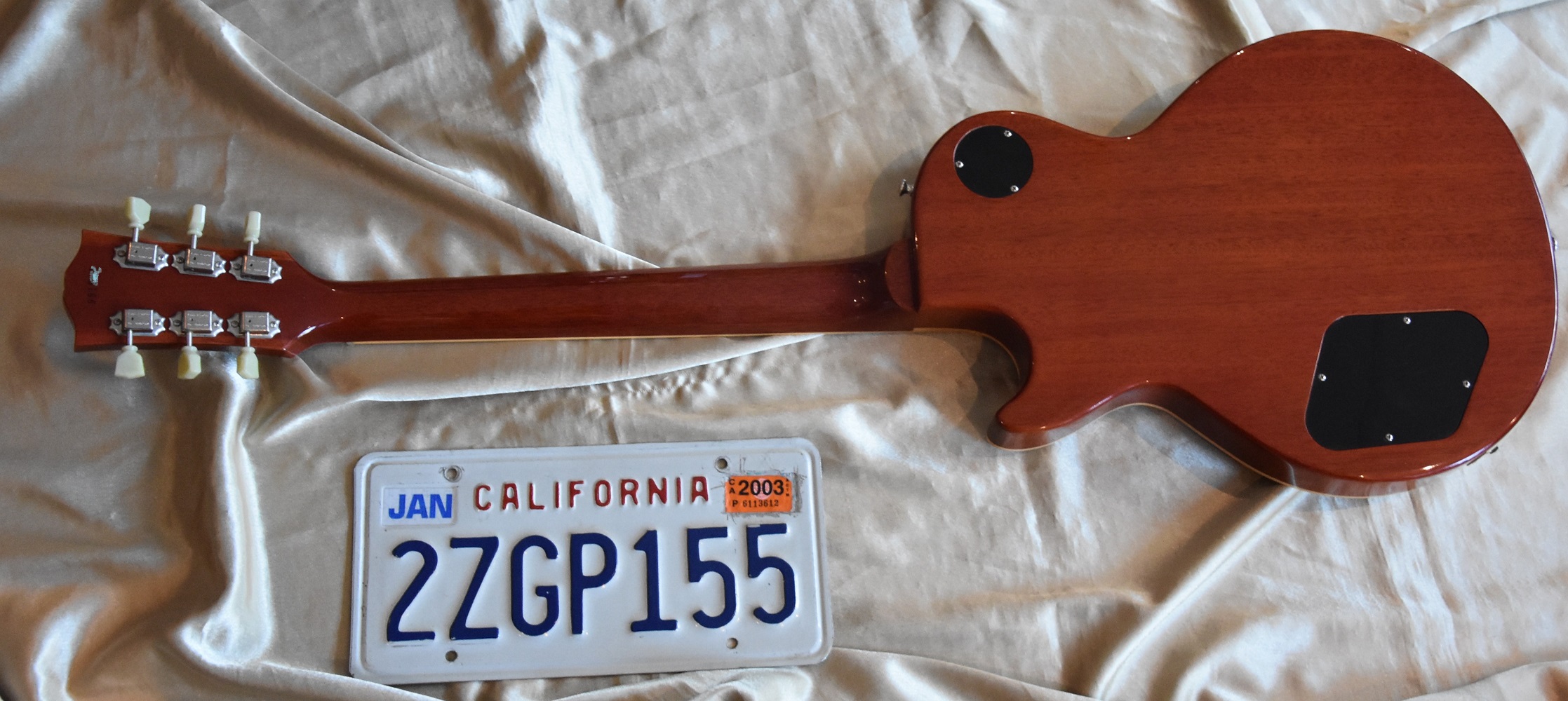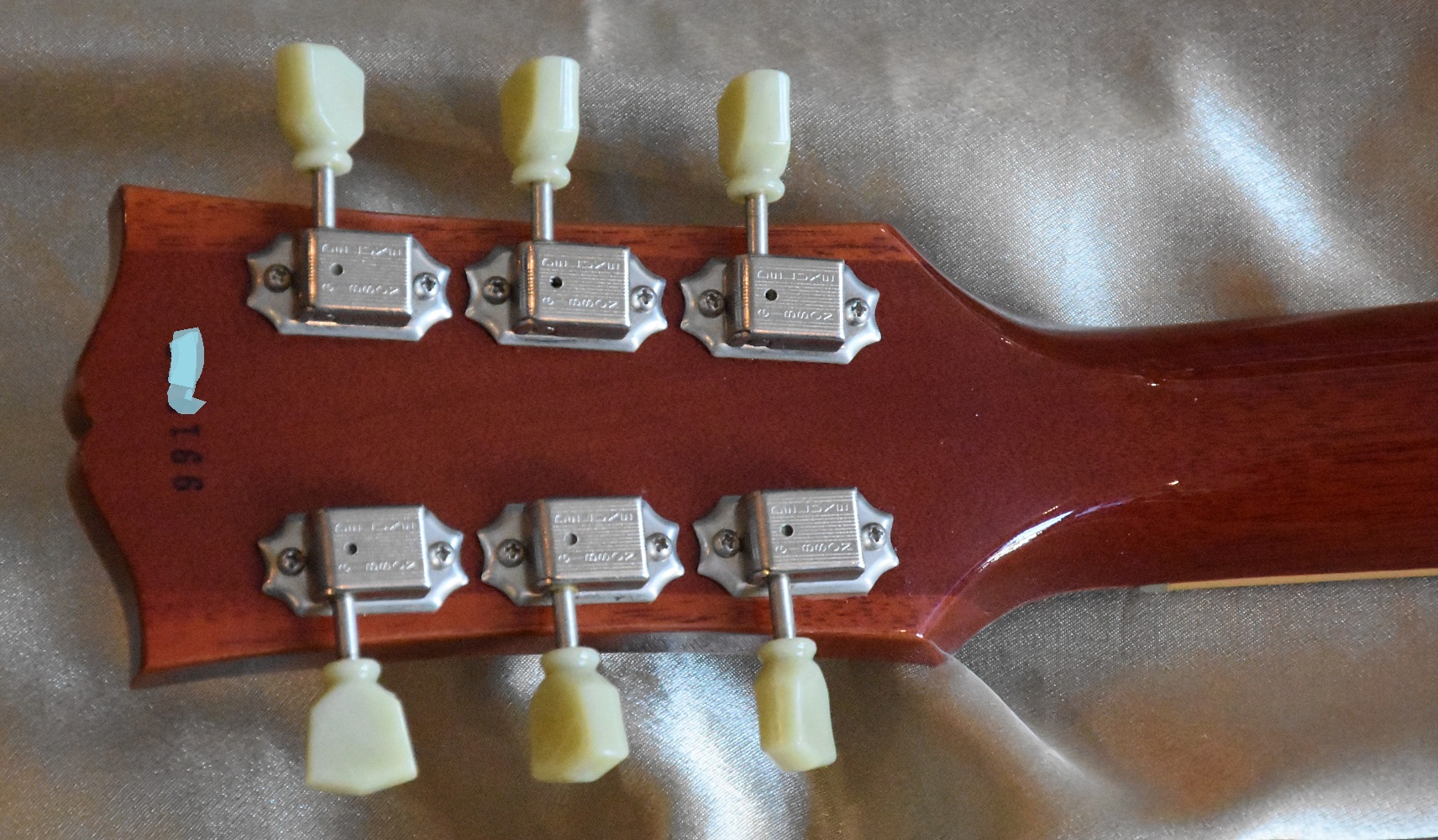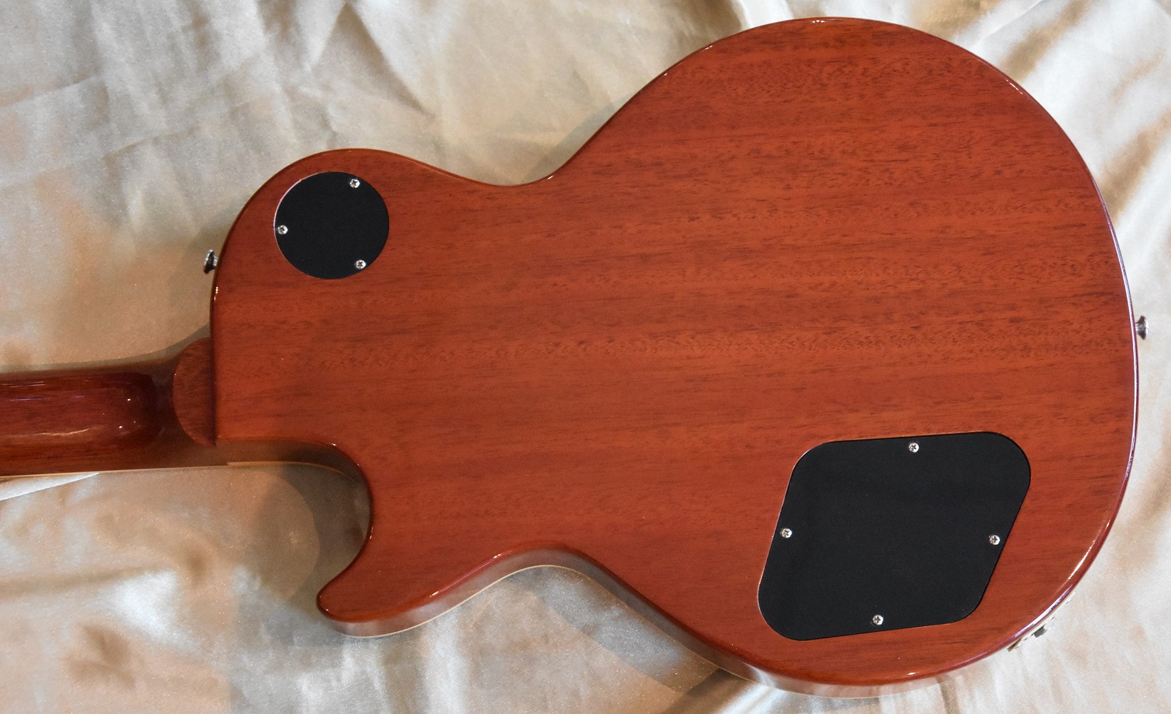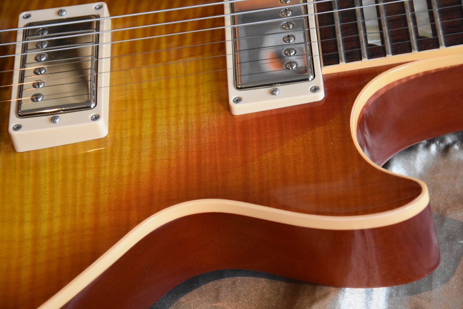 Le coloris est très réussi avec la marque faded d'un pseudo pickguard jamais monté car il est dans l'étui car GIBSON a jugé plus pertinent de ne pas le monter vue la nature exceptionnelle du top .