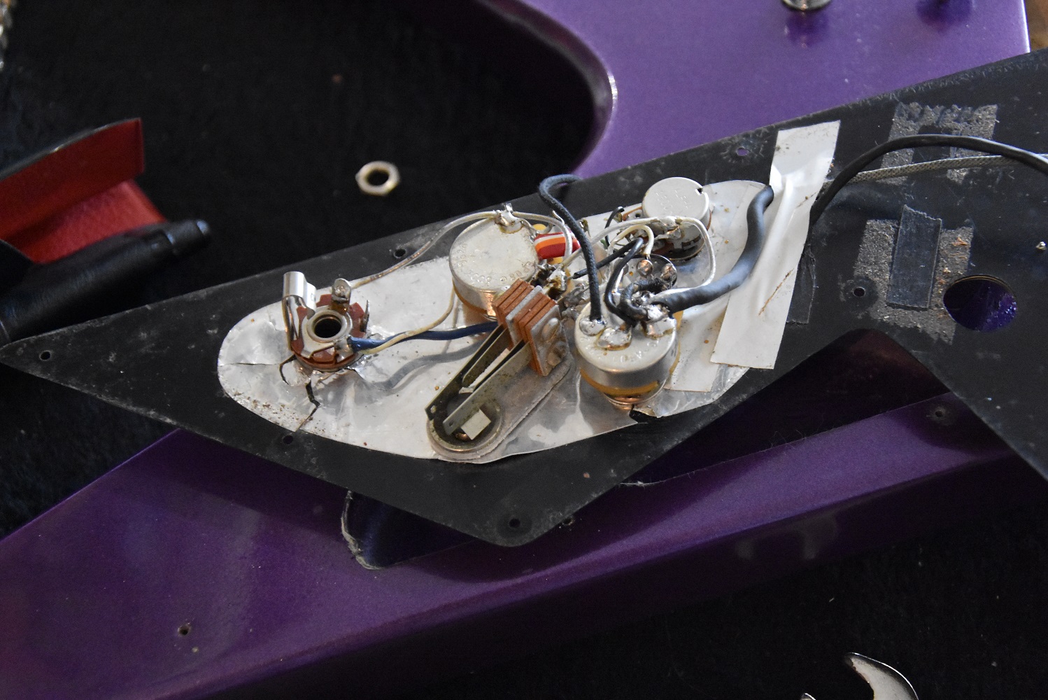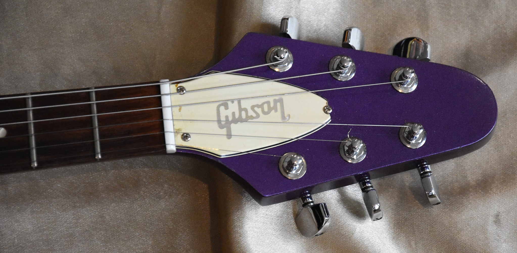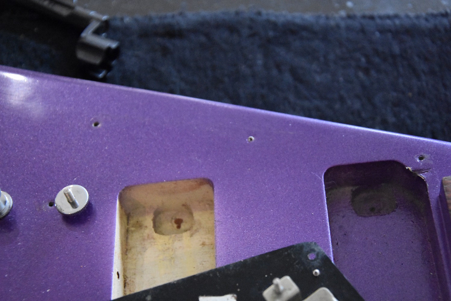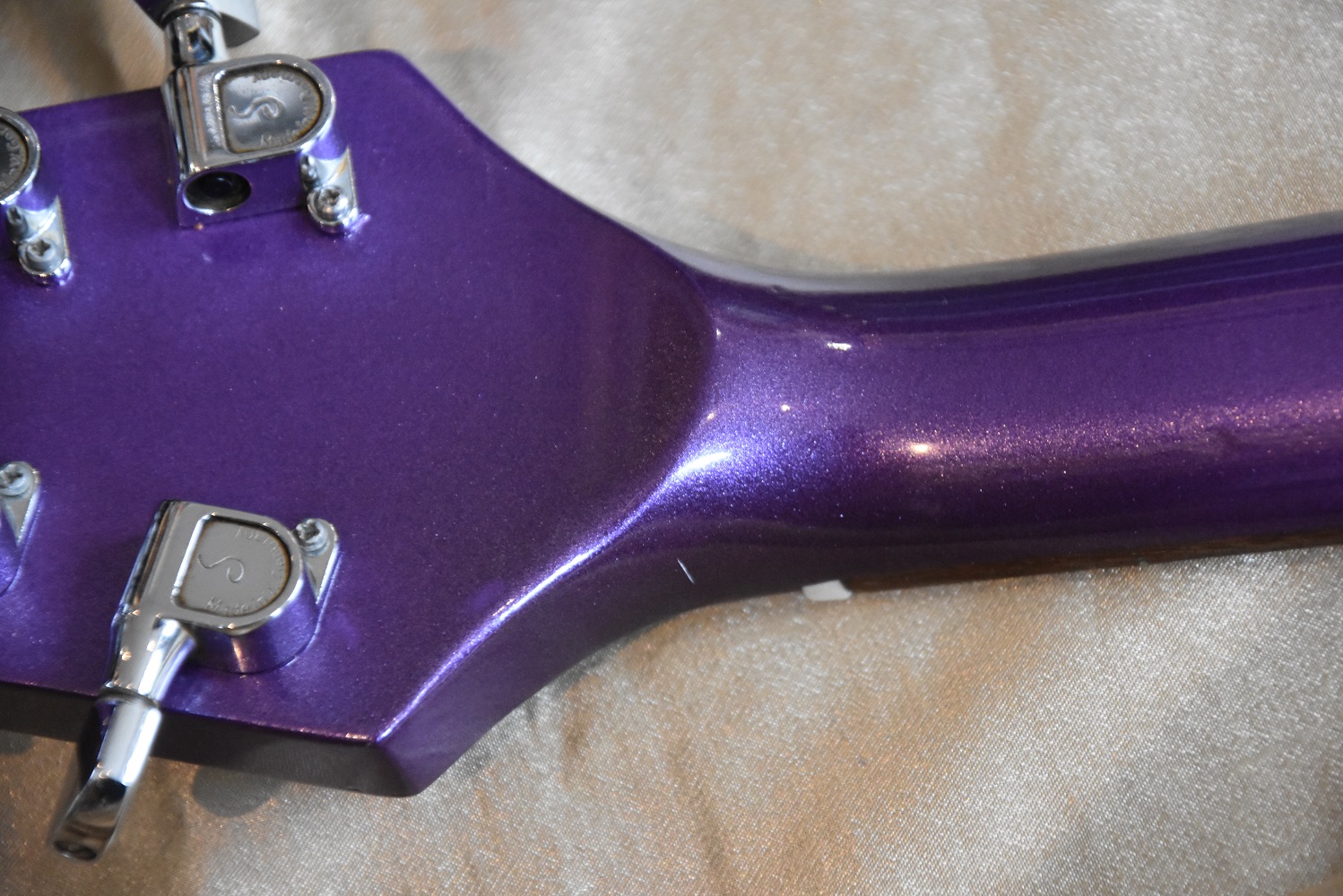 Son précédent propriétaire qui était un fan de prince l'a fait repeindre en purple métallisé , car la guitare était plutôt en mauvais état avec tête cassée .