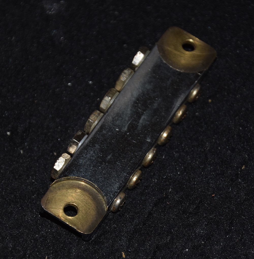 J'ai complèté la guitare en changeant le bridge inclus dans son case d'origine par un véritable STAR BRIDGE ( comme celle de KIRK) en laiton Chromé d'époque acheté a New york il y a peu .