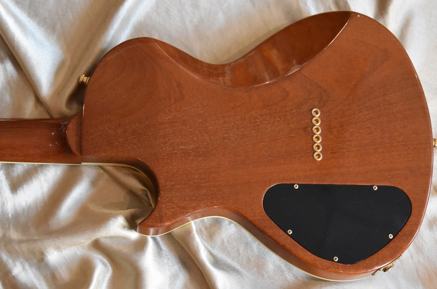 Comme toutes les versions custom elle est équipée d'une magnifique touche en ébène avec les repères de touche en mother of pearl.