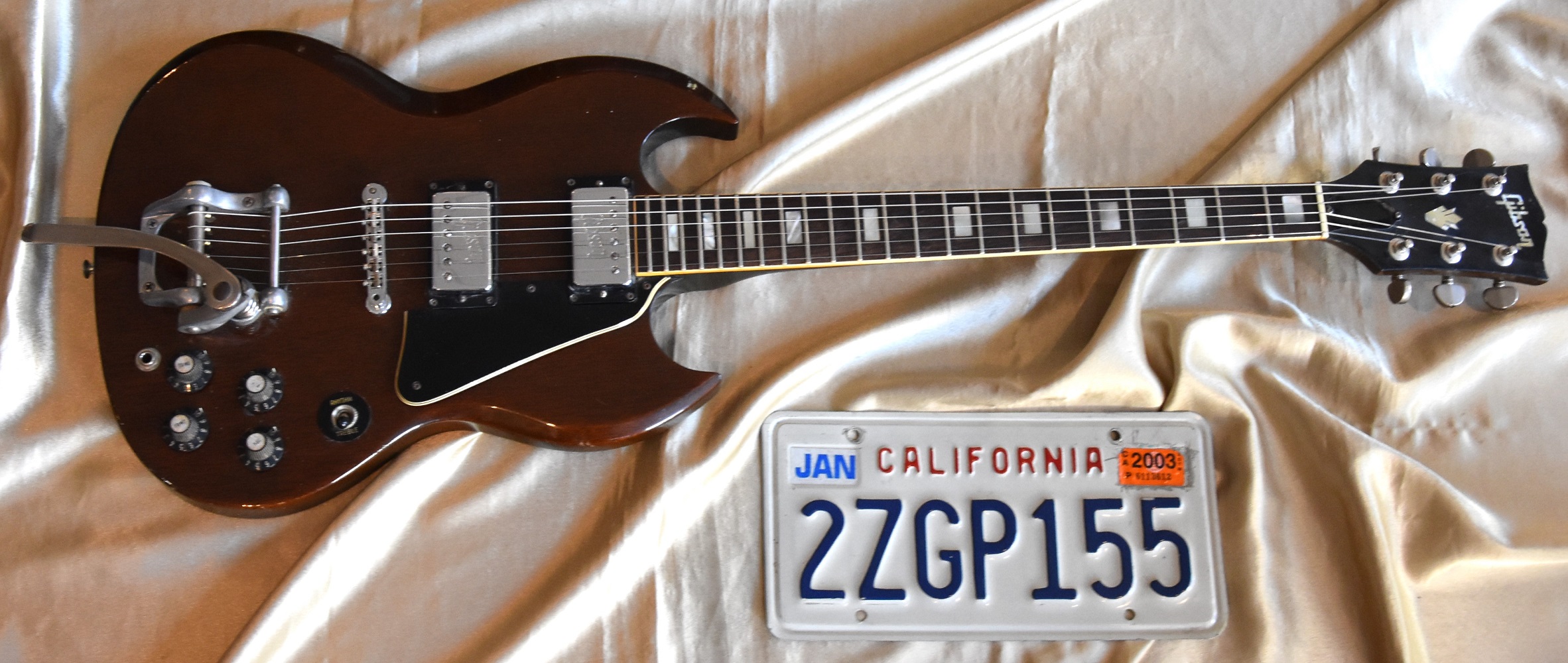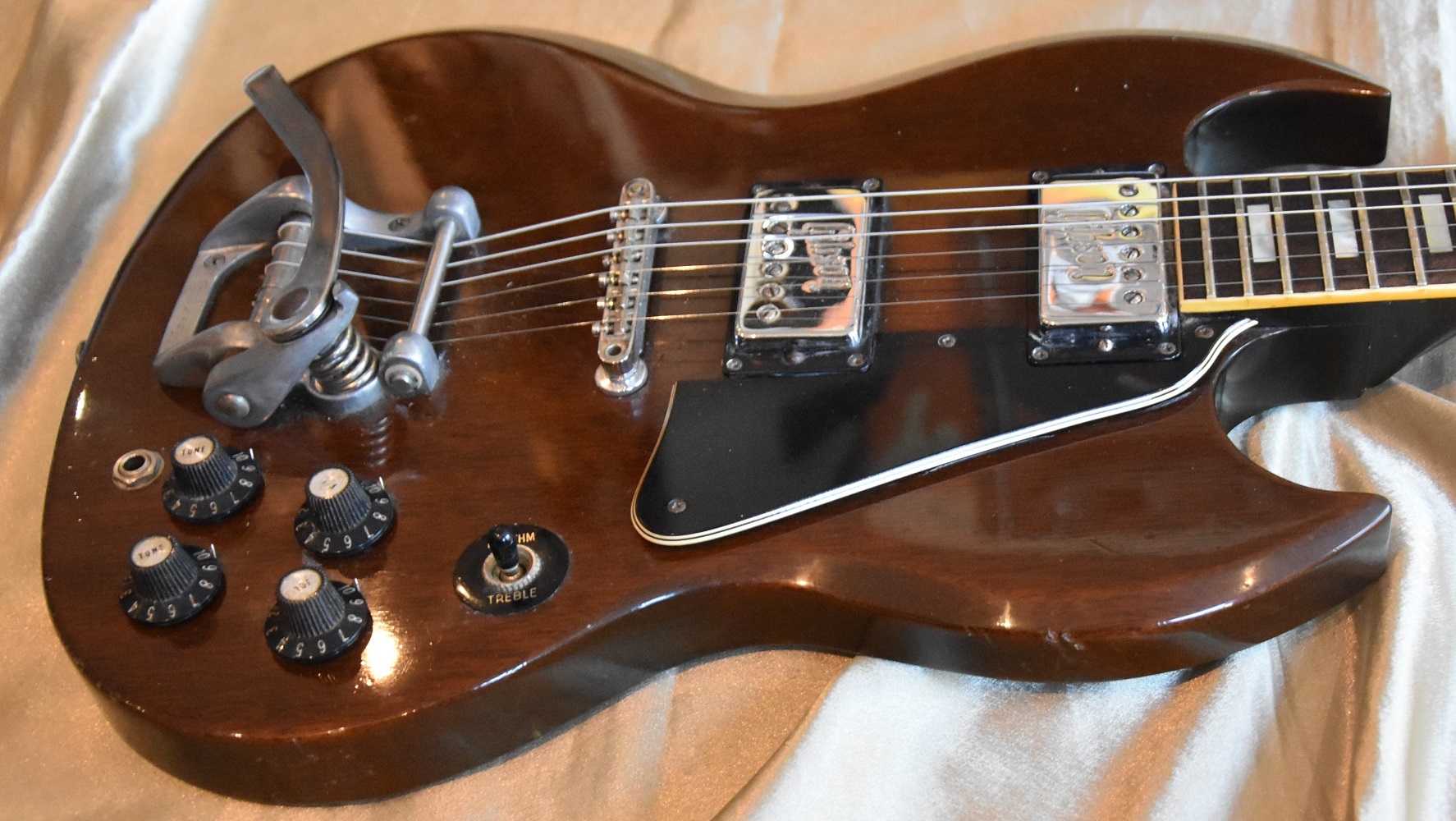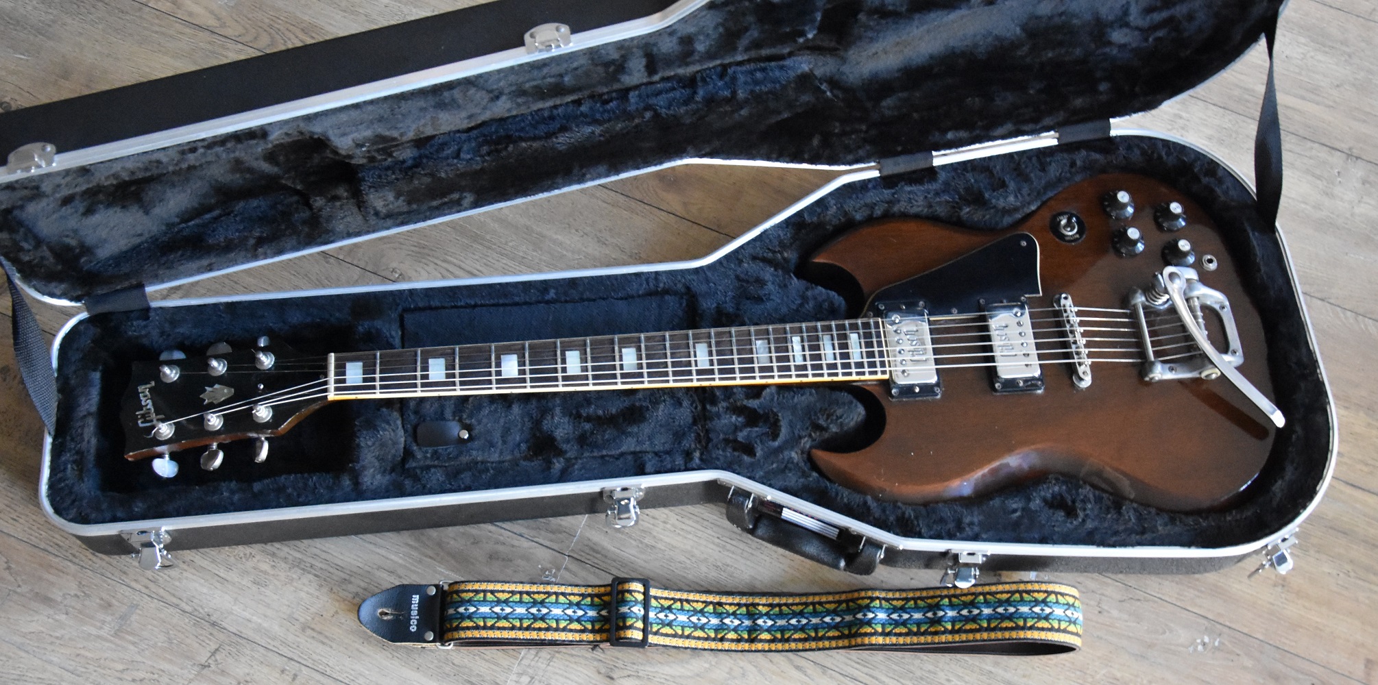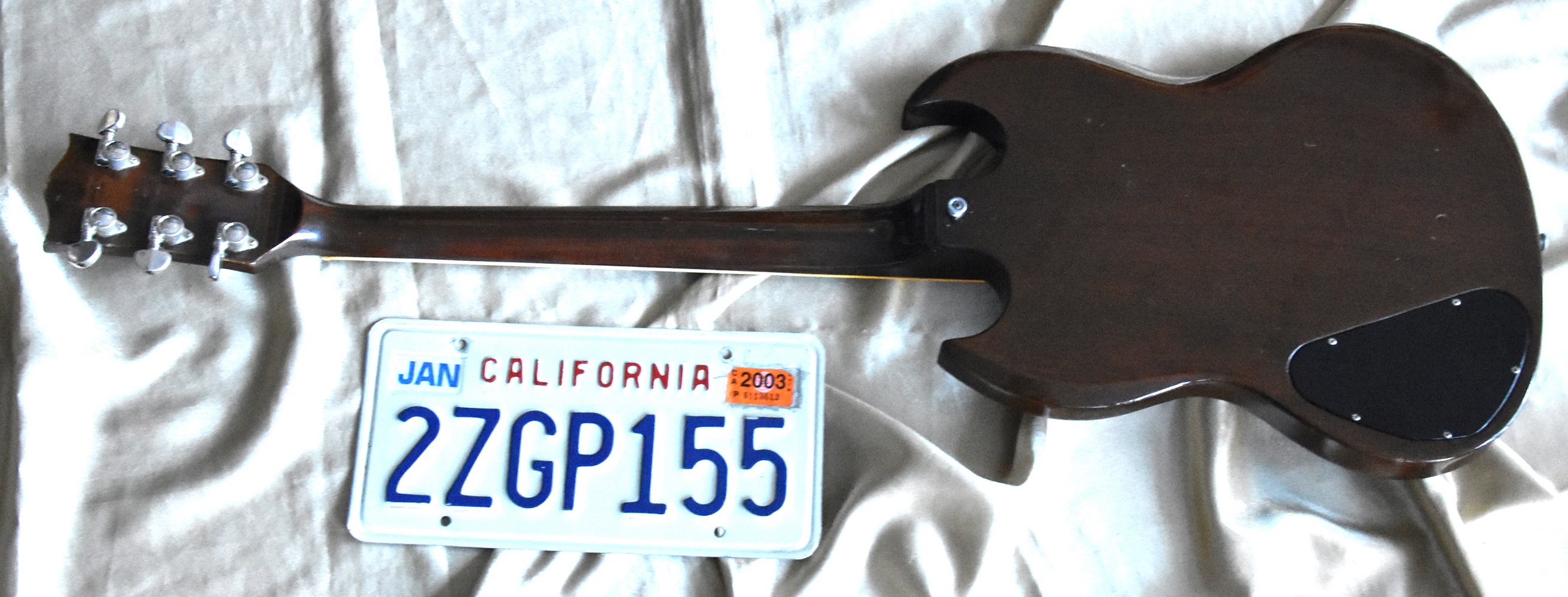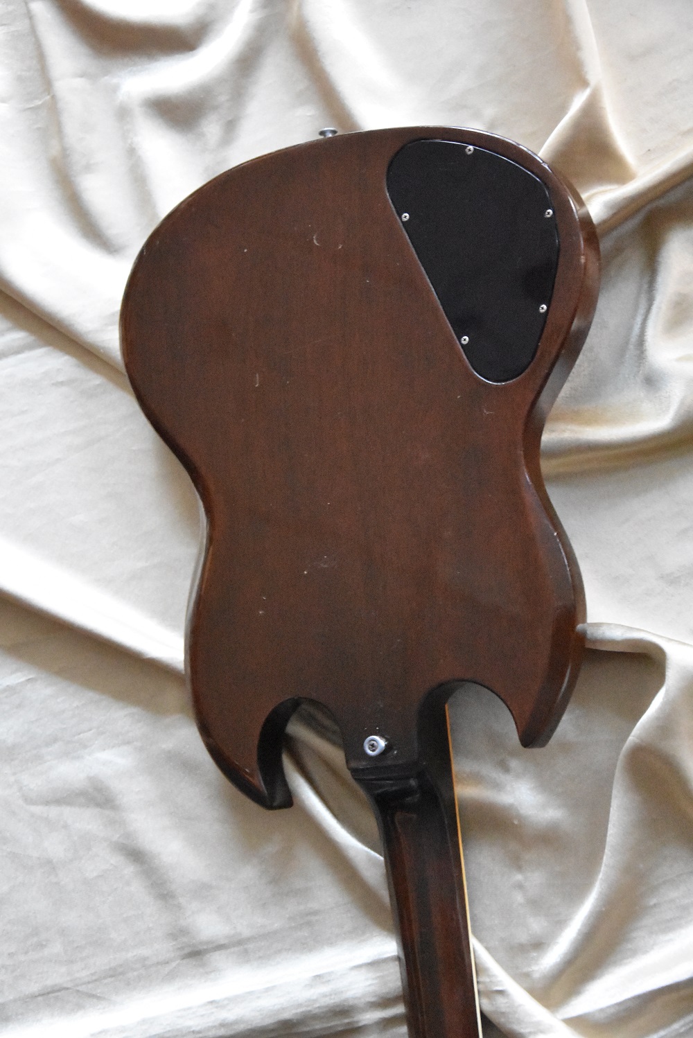 A partir de la mi 72 sont apparues des GIBSON SG de transition qui sont nommées SG DELUXE Standard avec la cavité électronique a l'arrière ( modèle hyper rare car seulement 2 photos dispos sur le net dans cette config) et celle-ci en fait partie .