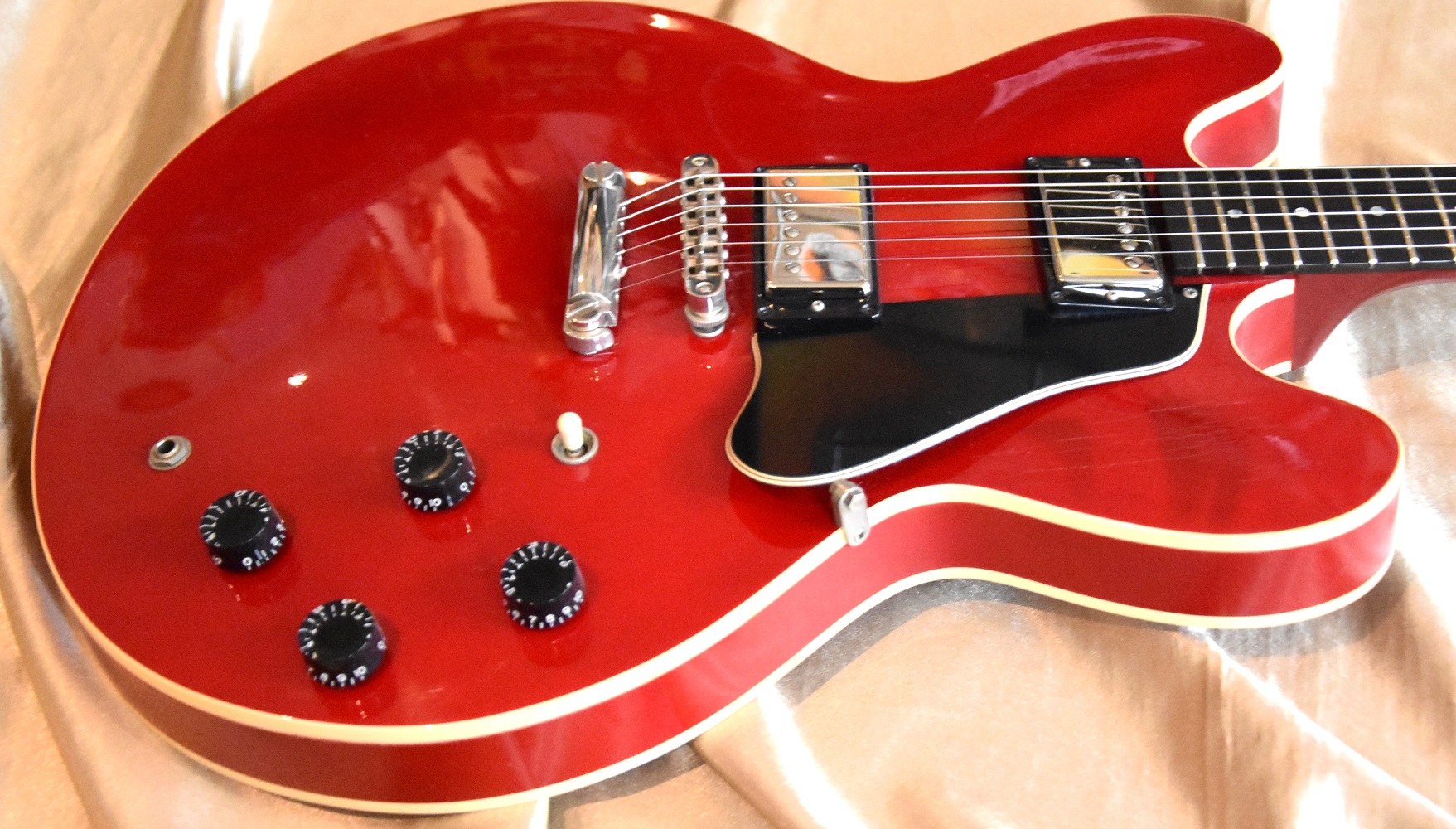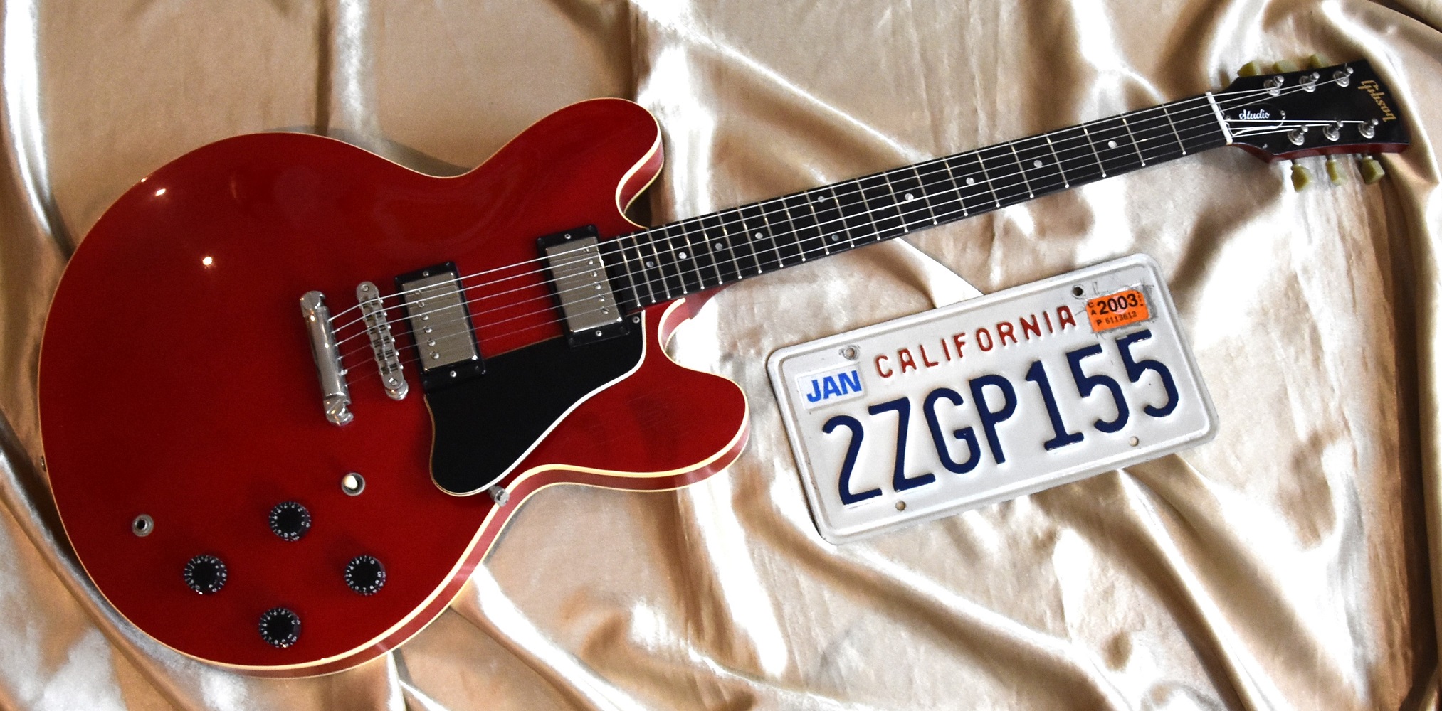 Cette GIBSON ES 335 Studio est un très bon cru , car touche ébène sur ce modèle , corps a la manière des BB KING sans ouies et c'est la dernière année ou les fameux micros Tim Shaw sont disponibles.