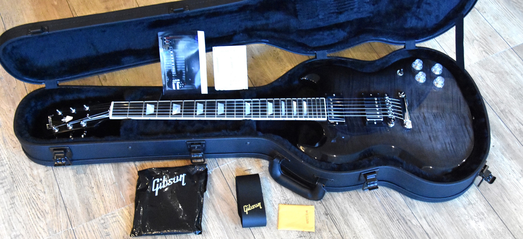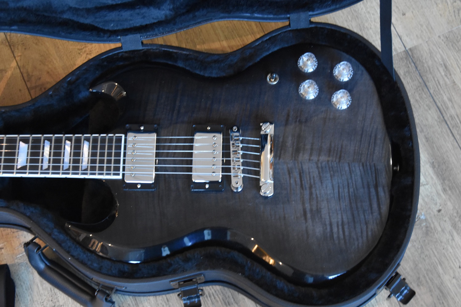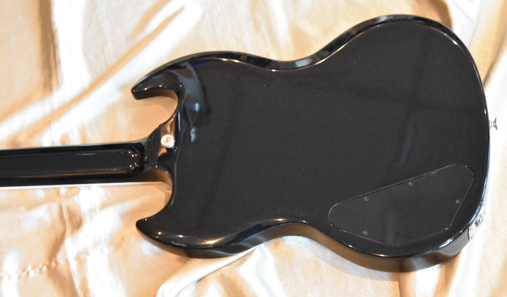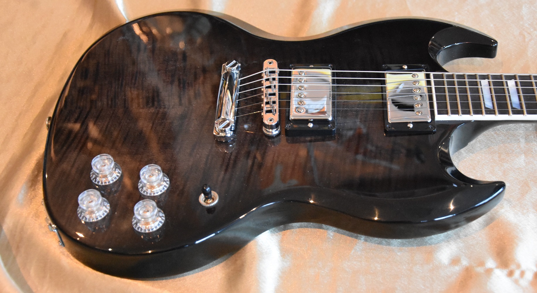 Voici une jolie interprétation de la SG en version 24 cases et touche en ébène taillée pour le rock et le métal.