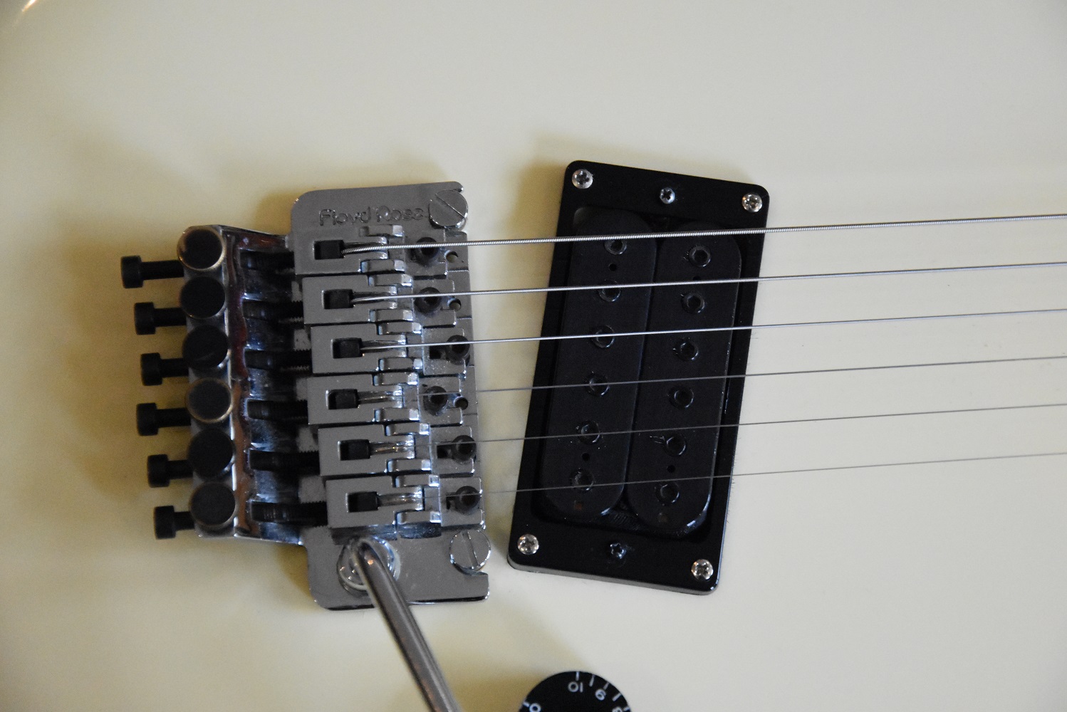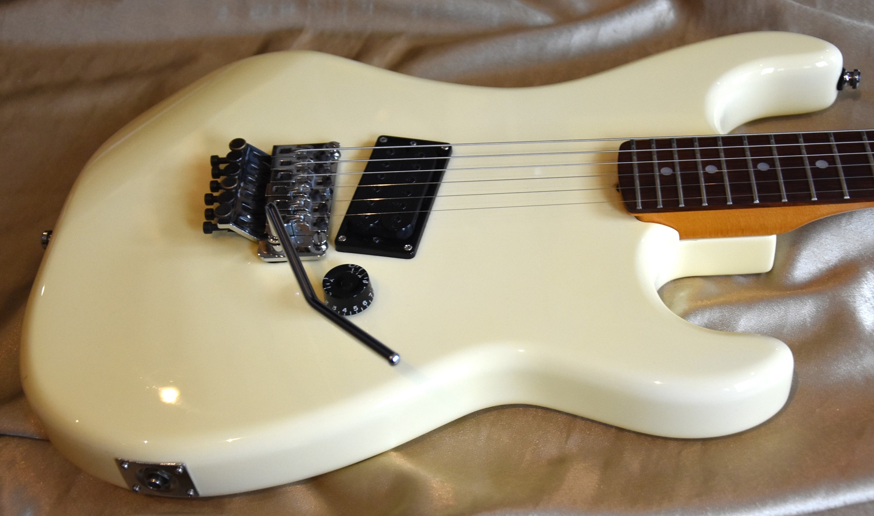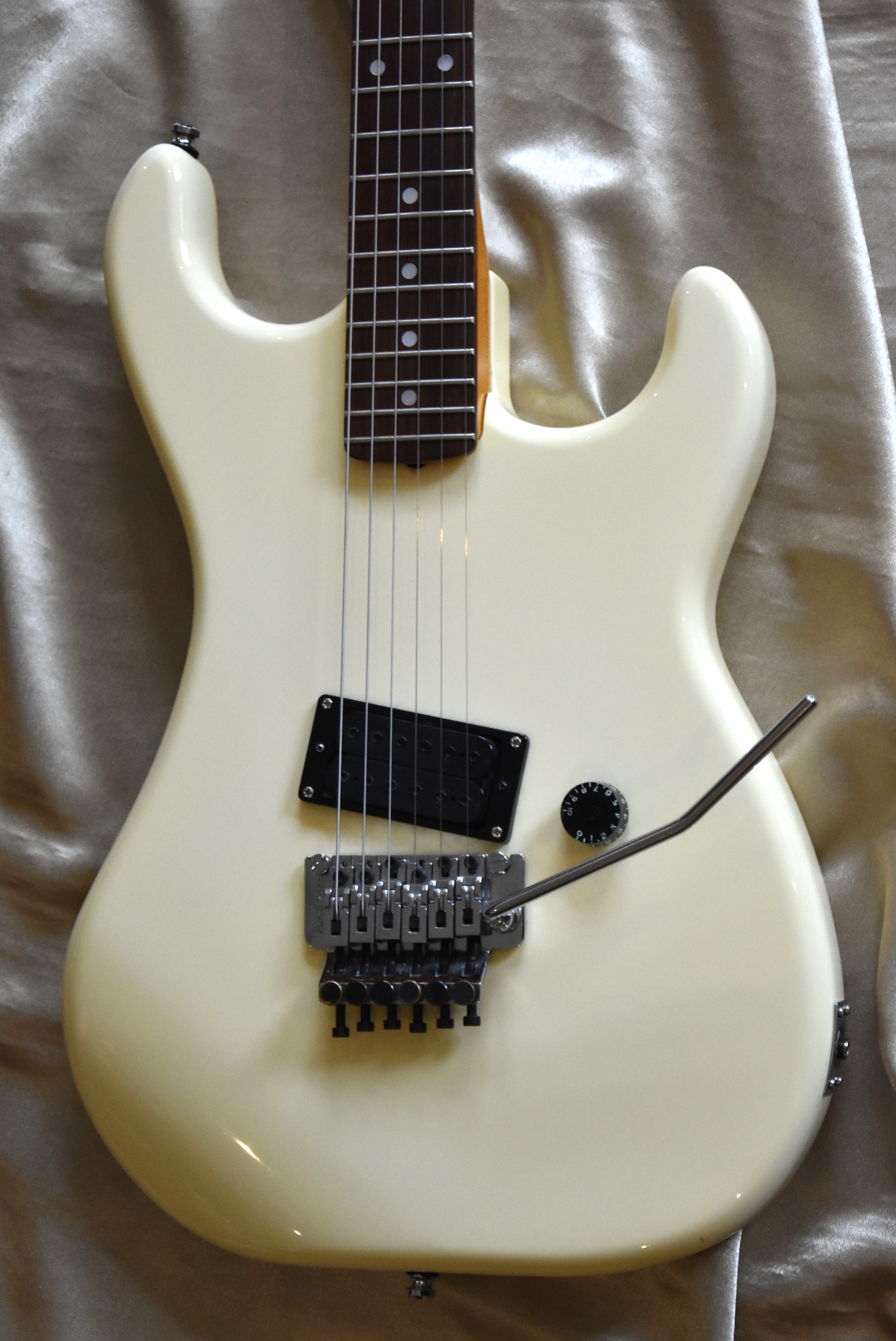 Donc nous avons affaire ici a un super strat de haute qualité équipé d'un Floyd Rose original de 1 ère génération .