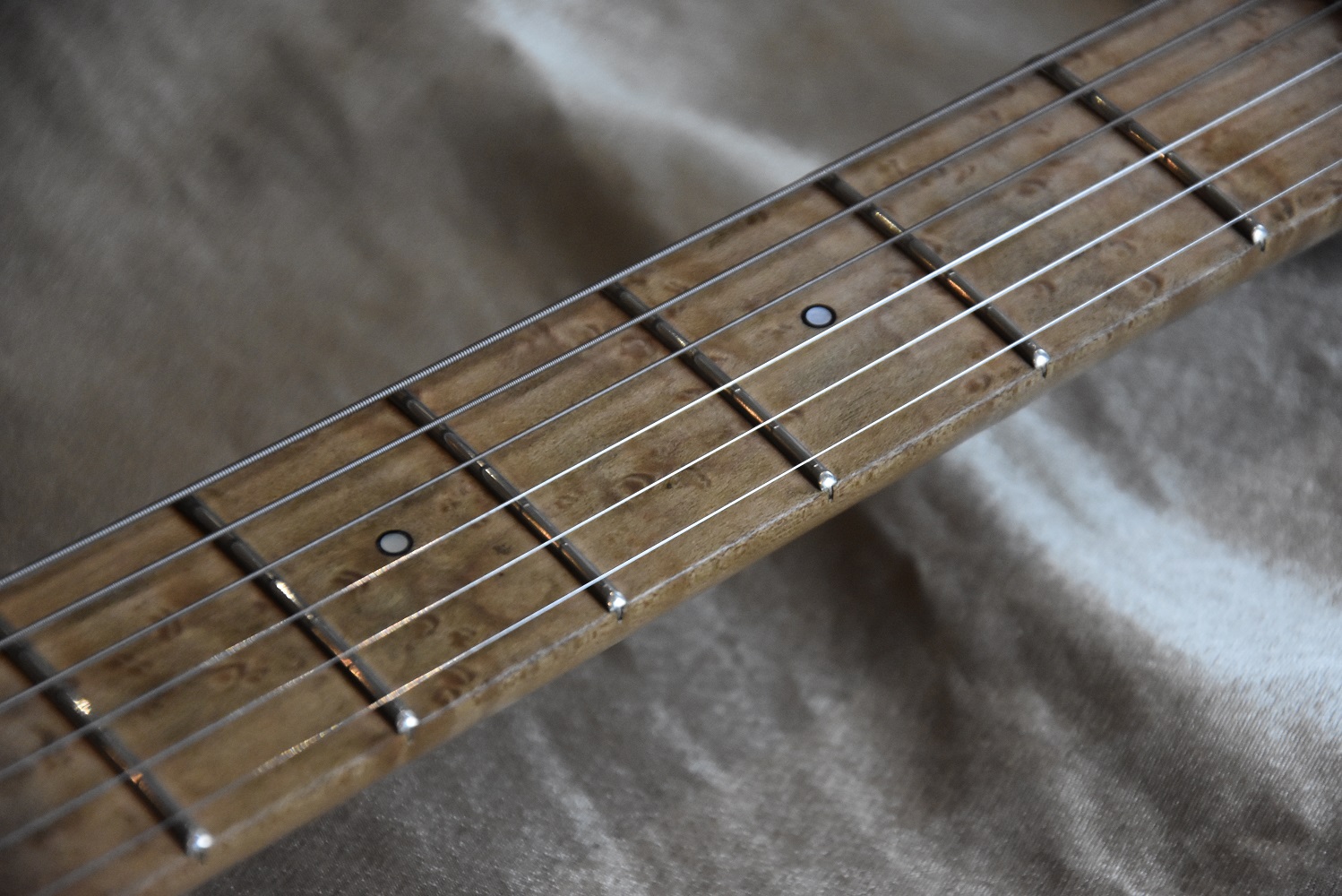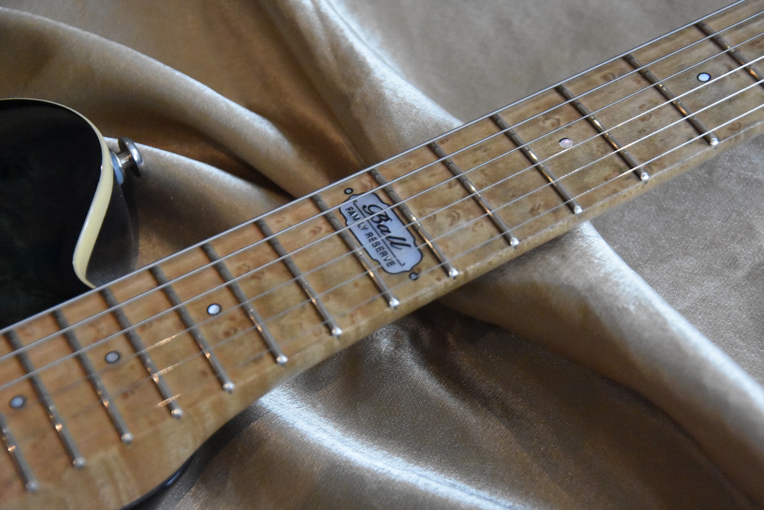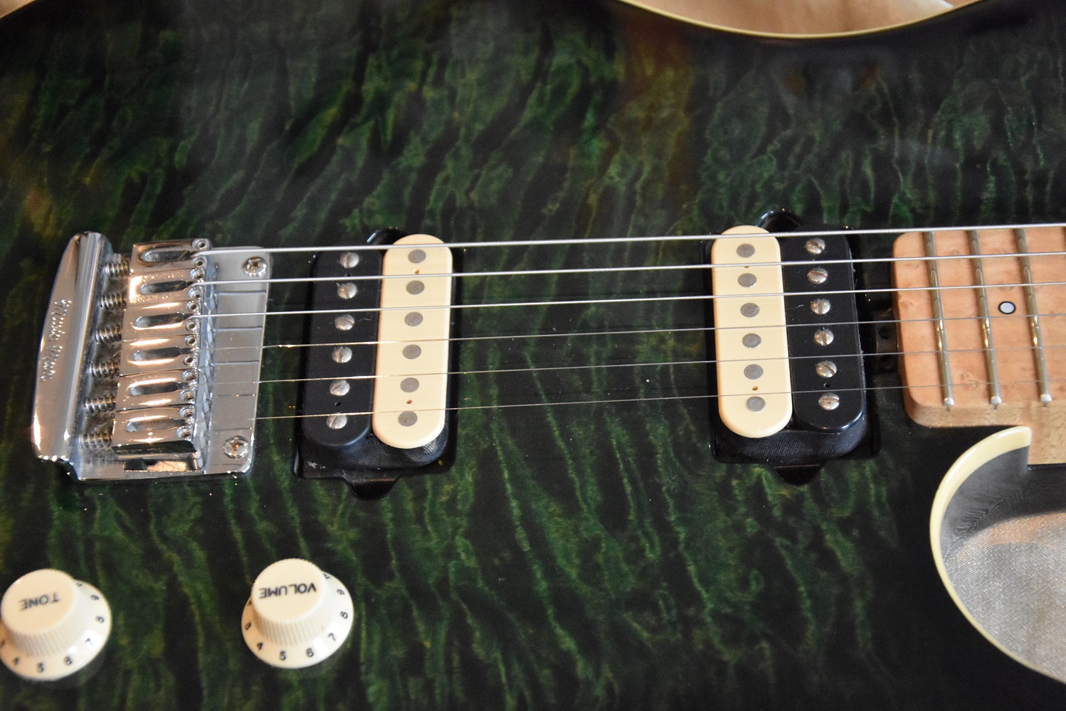 Le coloris trans green en érable quilted est sublime avec cette tête matching headstock.
